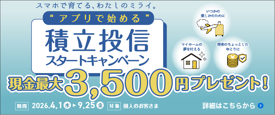 | 購入可能ファンド | ファンド一覧よりお選びください。 ※複数商品の購入可能 |