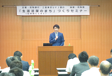 平成28年7月25日(月)鳥取銀行本店にて、三菱東京UFJ銀行との共催、鳥取県後援により『生涯活躍のまち(日本版CCRC)』制度への理解を深めることをテーマとして『生涯活躍のまち(日本版CCRC)』づくりセミナーを開催し、県内自治体、医療機関、介護事業者を中心に、定員を上回るおよそ60名の方にご来場頂きました。